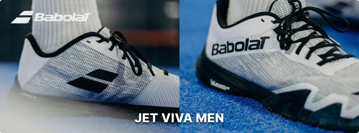 Discover the Babolat Jet Viva Men White Black – lightweight, dynamic, and powerful padel shoes designed for beginners and intermediate players aiming to enhance their performance on the court. These shoes will accompany you in all your goals, allowing you to move quickly, easily, and confidently.