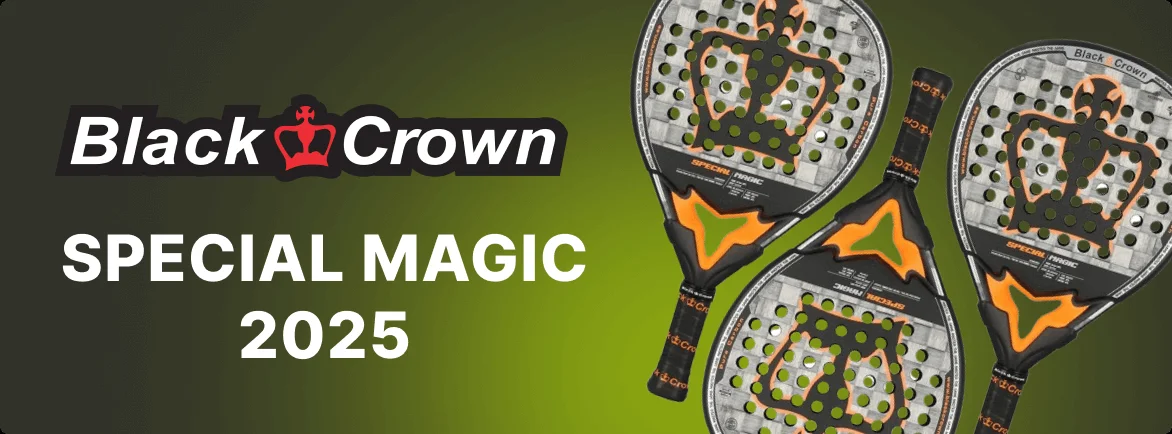 Power and Control in Every Shot — Black Crown Special Magic 2025. The Black Crown Special Magic 2025 padel racket is the perfect choice for players seeking a balance between power and control. With its teardrop shape, high-quality materials, and innovative technologies, this model delivers stability, precision, and comfort during play. It is ideal for all-round players looking to enhance their technique and dominate the court.