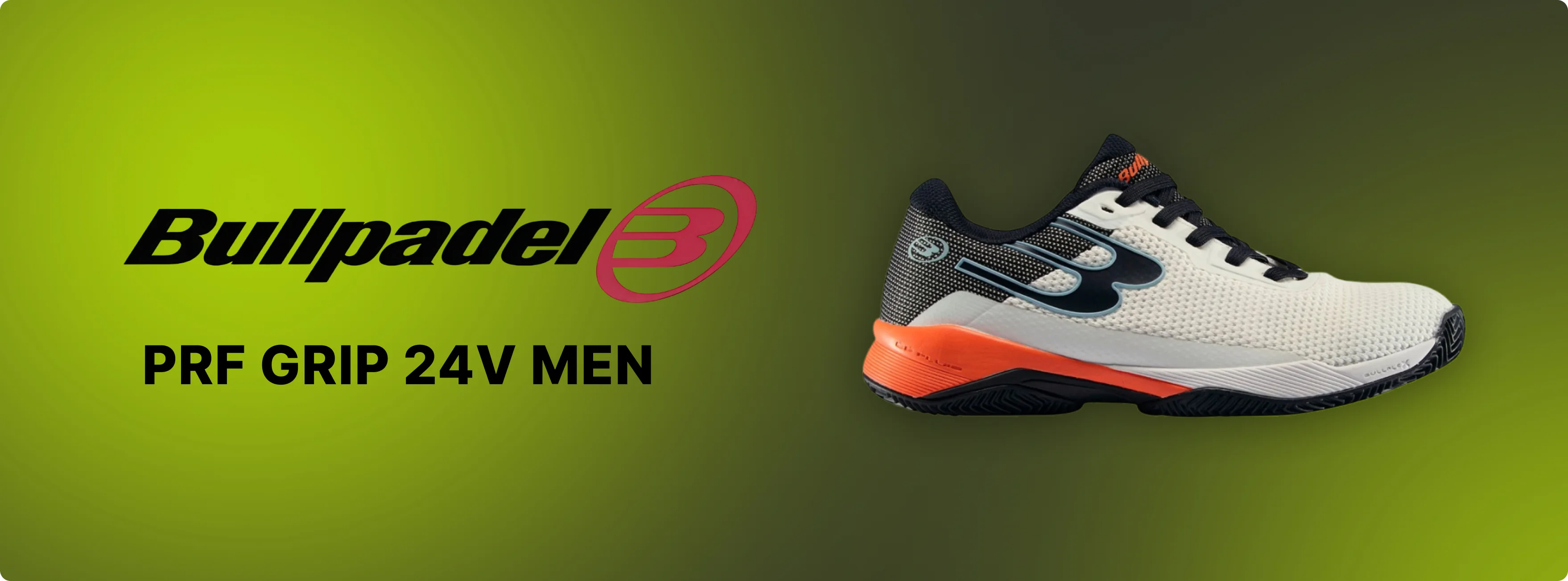 Descubra os Bullpadel PRF Grip 24V Men White – os ténis de padel perfeitos para jogadores que valorizam estilo e alto desempenho em campo. Com materiais leves, tecnologias avançadas e um elegante design branco com detalhes em preto e laranja, estes ténis oferecem conforto, estabilidade e excelente aderência durante o jogo.