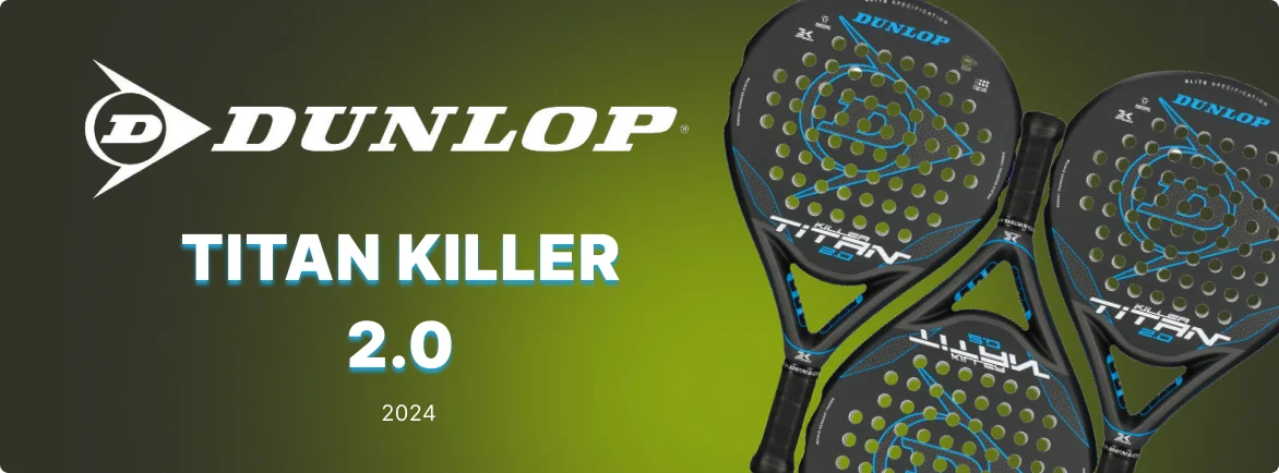 O modelo Dunlop Titan Killer 2.0 2024 combina uma geometria oversize agressiva, um Mega Flex Core flexível e a tecnologia Power Bar, que adapta o balance da raquete de acordo com a situação de jogo. Isto permite alcançar potência máxima nos golpes sem perder o controle.