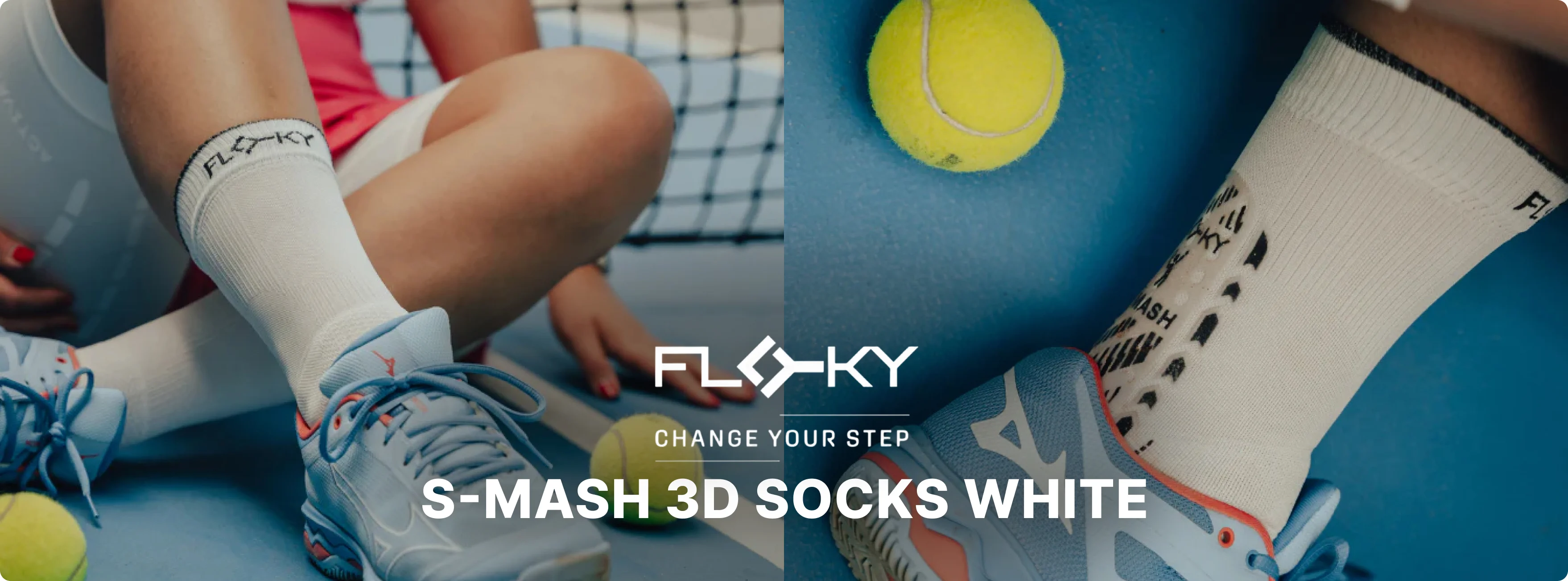 Floky S-Mash 3D Socks are the first biomechanical sports socks specifically designed for padel, pickleball, and tennis, providing maximum stability, comfort, and protection during fast movements on the court.