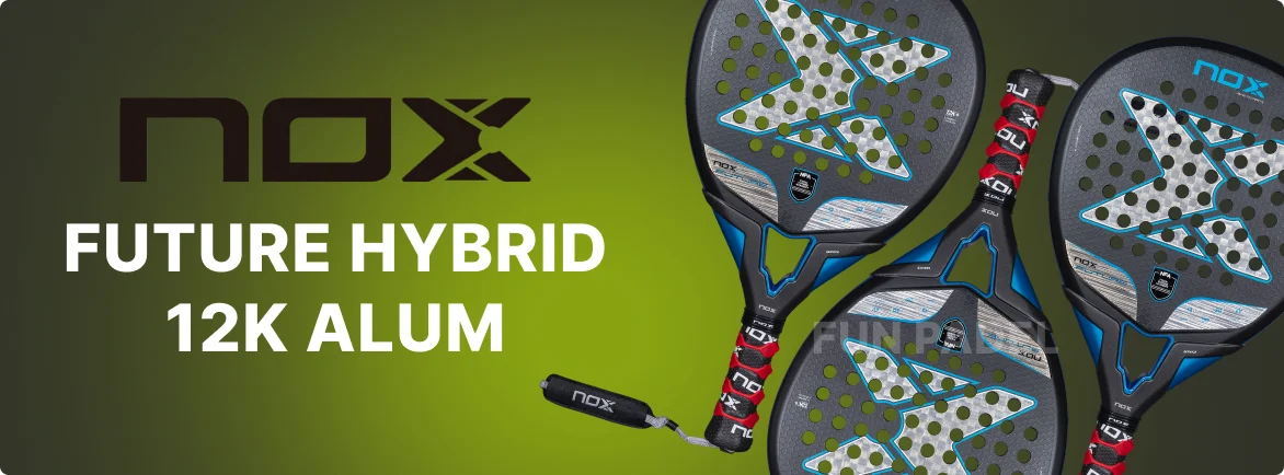 Comparada com a Nox ML10 Pro Cup, a Future Hybrid 12K Alum foca mais no jogo dinâmico e efeitos. Em relação à AT10 Genius Attack, esta raquete é mais equilibrada e adequada para jogo tanto ofensivo quanto defensivo.