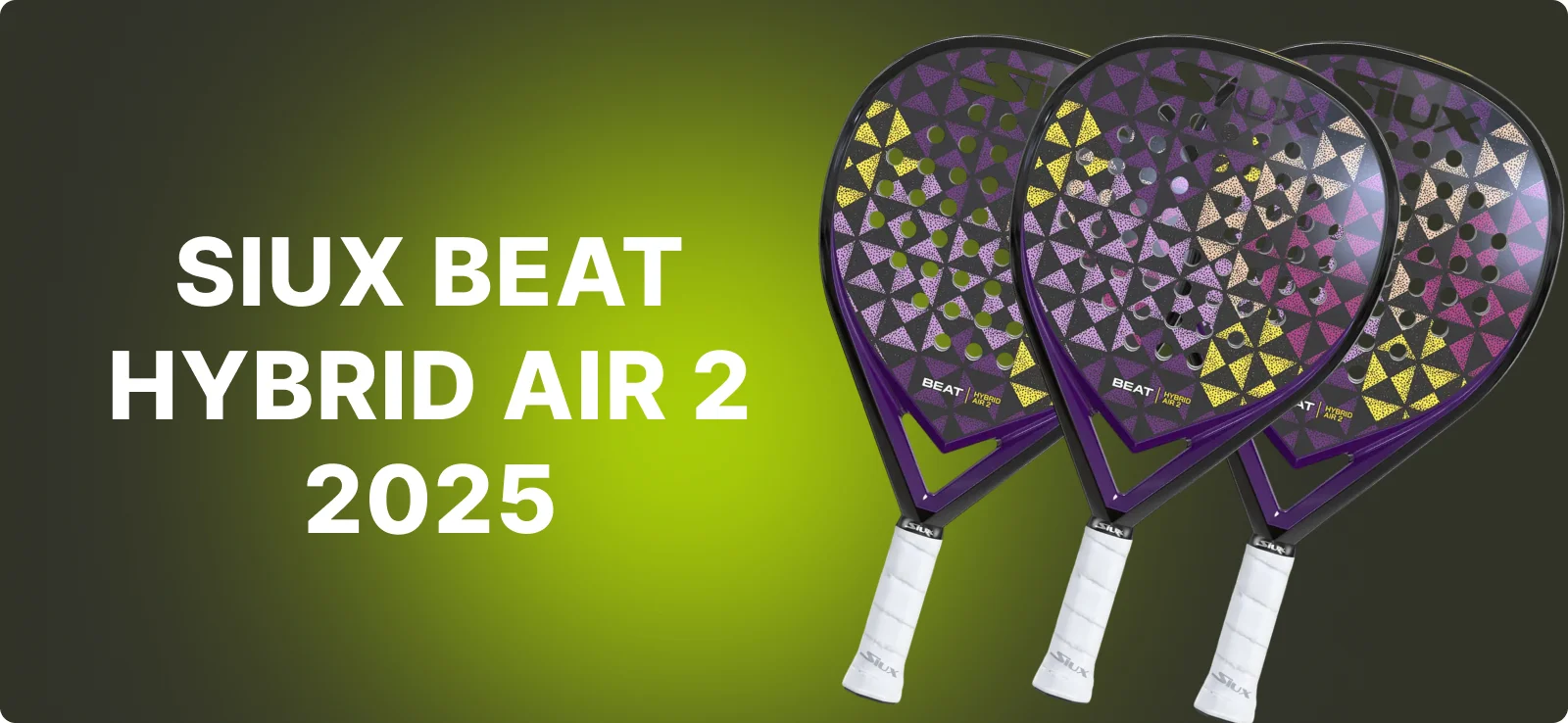 A Siux Beat Hybrid Air 2 2025 representa a nova geração da série Beat, oferecendo o equilíbrio perfeito entre conforto, controlo e versatilidade. Criada para jogadores que procuram uma raquete leve e com um toque suave, este modelo destaca-se pela sua manobrabilidade e sensação agradável em cada golpe. O formato híbrido em lágrima proporciona uma combinação excecional entre precisão e potência, ideal para quem deseja evoluir o seu jogo polivalente.