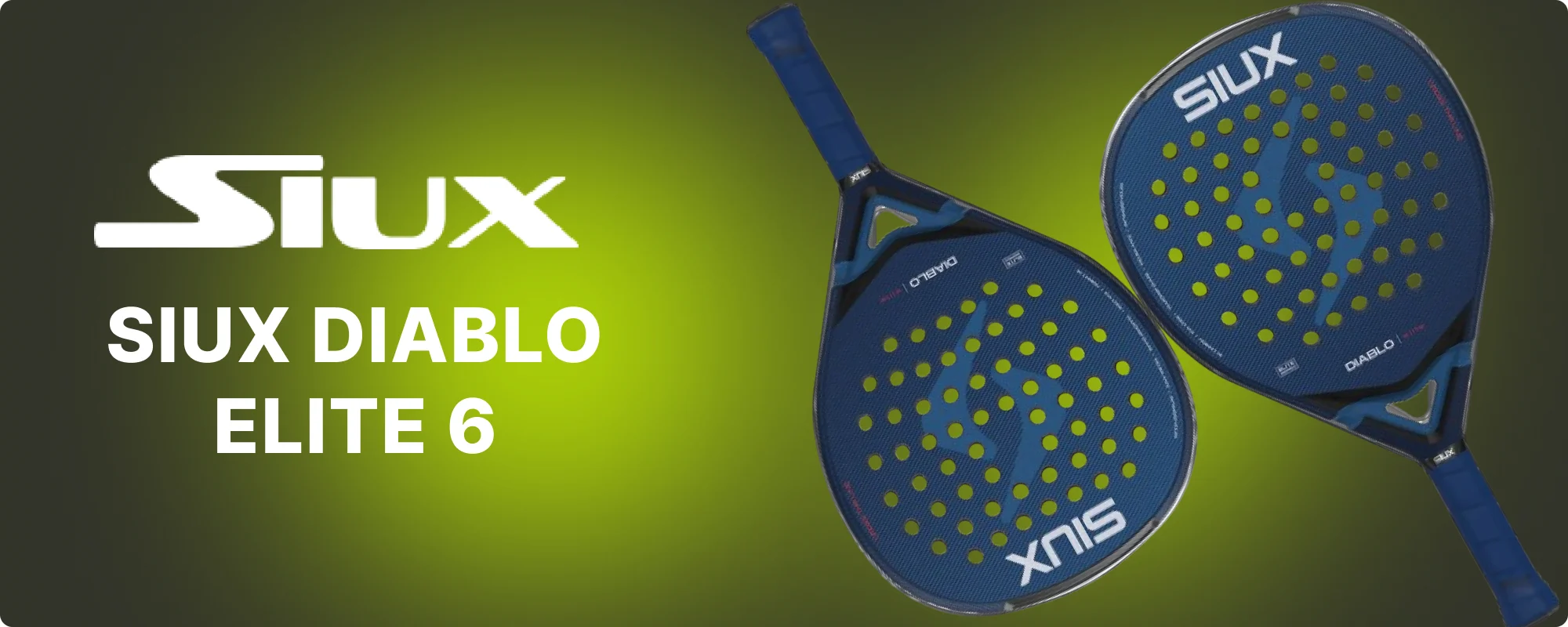 Esta raquete pertence à nova geração da linha Diablo da Siux, reconhecida pela sua sensação única e sofisticação tecnológica. O modelo Elite 6 aprimora o formato lágrima clássico com uma estrutura em carbono reforçada e uma ponte otimizada que melhora a transferência de energia. O seu núcleo EVA Soft Pro oferece conforto no impacto e uma resposta explosiva em jogadas ofensivas.