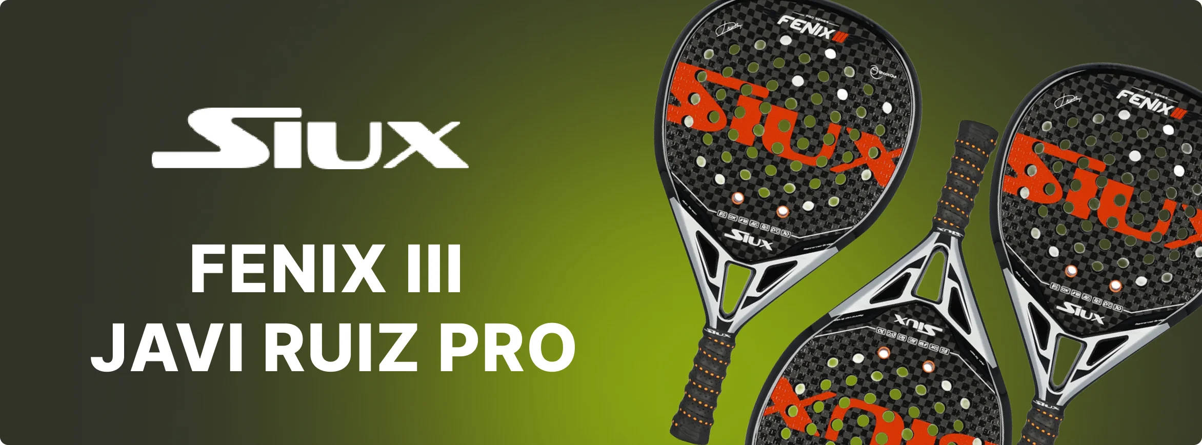 Siux Fenix III Javi Ruiz Pro — uma raquete de padel profissional, modelo oficial do jogador do World Padel Tour Javi Ruiz, concebida para quem valoriza potência, controlo e versatilidade no jogo. Combina materiais de alta qualidade e tecnologias modernas, garantindo conforto e precisão em quadra.