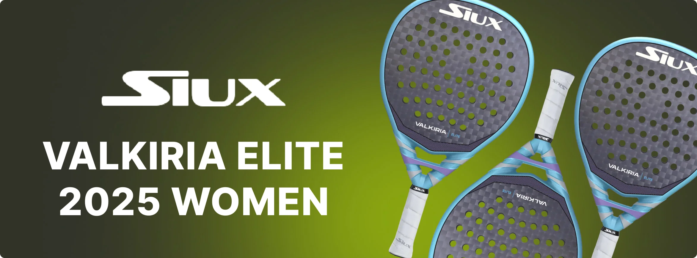 A Siux Valkiria Elite 2025 Women possui forma híbrida, superfície em carbono 12K e núcleo EVA macio, garantindo conforto e grande sweet spot. Comparada com a Siux Valkiria Pro 202, que utiliza carbono 24K, oferece maior leveza e manobrabilidade, sendo indicada para estilos de jogo menos agressivos.